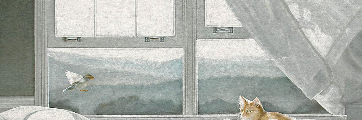 کارن هالینگزورث Karen Hollingsworth نقاش اهل آمریکا در سال ۱۹۵۵ در سنت لوئیس میسوری متولد شده است. او قصه گویی ست که از زیبایی ذاتی موجود در اشیاء روزمره و پرکاربرد در نقاشی هایش استفاده می کند. گنجاندن حیوانات در آثارش، لایه دیگری به هر داستان اضافه میکند.کارن هالینگزورث به خاطر آثار منحصر به فرد و روشن خود با نام WindowScapes شناخته میشود. در گذشته، این هنرمند فضاهای داخلی را نقاشی میکرد، اما اکنون یک پنجره باز را در آثار خود گنجانده است که به عنوان دریچهای به فضای بیرون عمل میکند. نقاشیهای بزرگ رنگ روغن او اغلب موضوعاتی را به تصویر میکشند که نسبتاً مینیمال هستند، صندلیها و چیدمانهای داخلی معمولی، با این حال آنچه بسیاری از بینندگان را جذب میکند، حالتی رویاگونه است که با حرکت هوا و نسیم اقیانوس از میان پردهها برانگیخته میشود.