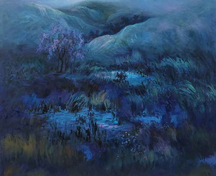 ابراهیم صاحباختیاری در سال ۱۳۳۶ در شیراز متولد شد. وی تحصیلات خود را در مقطع لیسانس رشته نقاشی از دانشکده هنرهای زیبای دانشگاه تهران به پایان رساند و در ادامه به تدریس و آموزش در دانشگاهها و مراکز آموزشی هنر پرداخت. صاحباختیاری طی سالهای عمر پر بار خود بیش از ۷۰ نمایشگاه انفرادی و گروهیِ داخلی و خارجی را در کارنامه فعالیتهای هنری به ثبت رساند. وی از برگزیدگان اولین و دومین نمایشگاه دوسالانه نقاشان ایران بود. استفاده از رنگ های شاعرانه و رویایی در فضاهای ماورای طبیعت از ویژگی آثارش است. ابراهیم صاحباختیاری، در سال ۱۳۸۸، بر اثر عارضه قلبی در تهران درگذشت. آثار این هنرمند تاکنون در چهار دوره حراج تهران، خرداد ۱۳۹۴، دی ۱۳۹۵، دی ۱۳۹۹، تیر ۱۴۰۳ به نمایش درآمده و خریداری شده است.