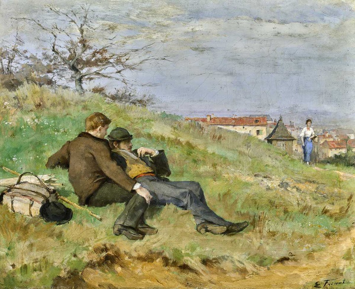 امیل فرینت Émile Friant هنرمند فرانسوی متولد ۱۸۶۳ بود که در سال ۱۹۳۲ در سن شصت و سه سالگی در گذشت. وی در جریان حمله سربازان آلمانی در زمان جنگ جهانی دوم از کمون دیاز به نانسی نقل مکان کرد.در دوران نوجوانی، فرینت نزد یک معلم خصوصی به نام لویی تئودور دیویلی، شروع به یادگیری آکادمیک نقاشی کرد و طبیعت بیجان و نقاشی منظره را آموزش دید.در ۱۵ سالگی پرتره ای از خودش ترسیم کرد که در سالن هنری نانسی به نمایش درآمد و خیلی مورد توجه قرار گرفت. بعد از آن مدتی در پاریس تحت نظر الکساندر کابانل آموزش دید و بعد از آن به نانسی برگشت و در کلاس هاس استاد ایمه موروت شرکت کرد.بین سال های ۱۸۸۲ تا ۱۹۰۰ موفقیت های زیادی در نقاشی کسب کرد و جوایزی به دست آورد. در سال ۱۸۸۶ کمک هزینه سفر به هلند را دریافت کرد و در آن جا تحصیلات هنری اش را ادامه داد.