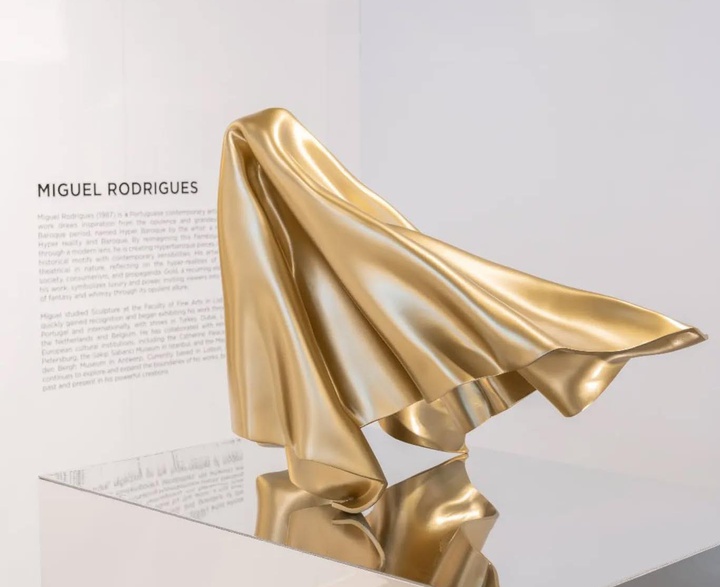 میگل رودریگز Miguel Rodriguesis هنرمند مجسمه سازِ پرتغالی، آثار این هنرمند از شکوه و جلال دوره باروک الهام گرفته است. دورهای که خود هنرمند آن را هایپر باروک نامیده است. ترکیبی از هایپر رئالیتی و باروک. او با بازآفرینی این سبک پر زرق و برق از دریچهای مدرن، آثار هایپر باروک خلق میکند و نقوش تاریخی را با حساسیتهای معاصر در هم میآمیزد. آثار هنری او ماهیتی نمایشی دارند و منعکسکنندهی هایپر رئالیتیهای جامعهی مدرن، مصرفگرایی و تبلیغات هستند. طلا، عنصری تکرارشونده در آثار او، نماد تجمل و قدرت است و با جذابیت وافر خود، بینندگان را به دنیایی از خیال و خیالپردازی دعوت میکند. میگل در دانشکدهی هنرهای زیبای لیسبون، مجسمهسازی خواند. به سرعت به شهرت رسید و شروع به نمایش آثار خود در پرتغال، ترکیه، دبی، لندن، کویت، فرانسه، هلند و بلژیک کرد. او با مؤسسات فرهنگی مشهور اروپایی، از جمله کاخ کاترین در سن پترزبورگ، موزه ساکیپ سابانچی در استانبول و موزه مایر ون دن برگ در آنتورپ همکاری داشته است. میگل که در حال حاضر در لیسبون مستقر است، همچنان به کاوش و گسترش مرزهای آثار خود ادامه میدهد و در آثار قدرتمند خود، گذشته و حال را به هم پیوند میدهد.