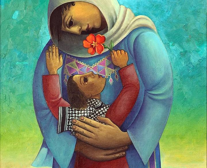 سلمان منصورSliman Mansour متولد ۱۹۴۷، از چهره های مهم در میان هنرمندان معاصر فلسطین به شمار می رود. سامیه حلبی، هنرمند و محقق فلسطینی، منصور را بهعنوان بخشی از جنبش هنر آزادیبخش معرفی کرده و از او بهعنوان هنرمند و فعال فرهنگی قبل و بعد از انتفاضه یاد میکند. در طول انتفاضه، منصور به همراه هنرمندانی همچون شامل تیسیر برکات، ورا تماری و نبیل عنانی عضو گروه "دیدگاه های نو" (گروه هنرمندان فلسطینی) بود. این گروه در اعتراض به رژیم اسراییل، فقط از لوازم هنری و ترکیب موادی که در فلسطین پیدا می شد برای خلق آثارشان استفاده می کردند. در سال ۱۹۸۸، چهار نقاشی دیواری بر دیوار روستاهای ویران شده ییبنا، یالو، ایمواس و بیت داجان کشید. منصور یکی از نویسندگان کتاب "هر دو طرف صلح،هنر پوستر سیاسی اسرائیل و فلسطین" است که در سال ۱۹۹۸ توسط موزه هنرهای معاصر و دانشگاه واشنگتن منتشر شد.