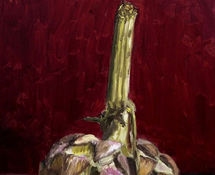 جولیا هوخبام Julia Hochbaum هنرمند نقاش آلمانی، سال ۱۹۹۳ در آلمان به دنیا آمد. تحصیلاتش را در رشته تاریخ هنر ، دانشگاه لایپزیگ ادامه داده است و آثارش تاکنون در کشورهای آلمان، دانمارک و آمریکا به نمایش درآمده است. جولیا هوخبام آن چه را که نادیده میگیریم، با جزئیات به ما نشان میدهد. او از ژانر سنتی و زیبای طبیعت بیجان برای نگاهی دقیق استفاده میکند. تمرکز او گاهی اوقات میوههایی مانند انار یا لیمو با صحنهآرایی کلاسیک و گاهی اوقات به طرز طراوتبخشی غیرمتعارف، مانند یک دونات است. هنر او نه وانمود میکند که تاریخی است و نه عمداً خود را معاصر نشان میدهد.