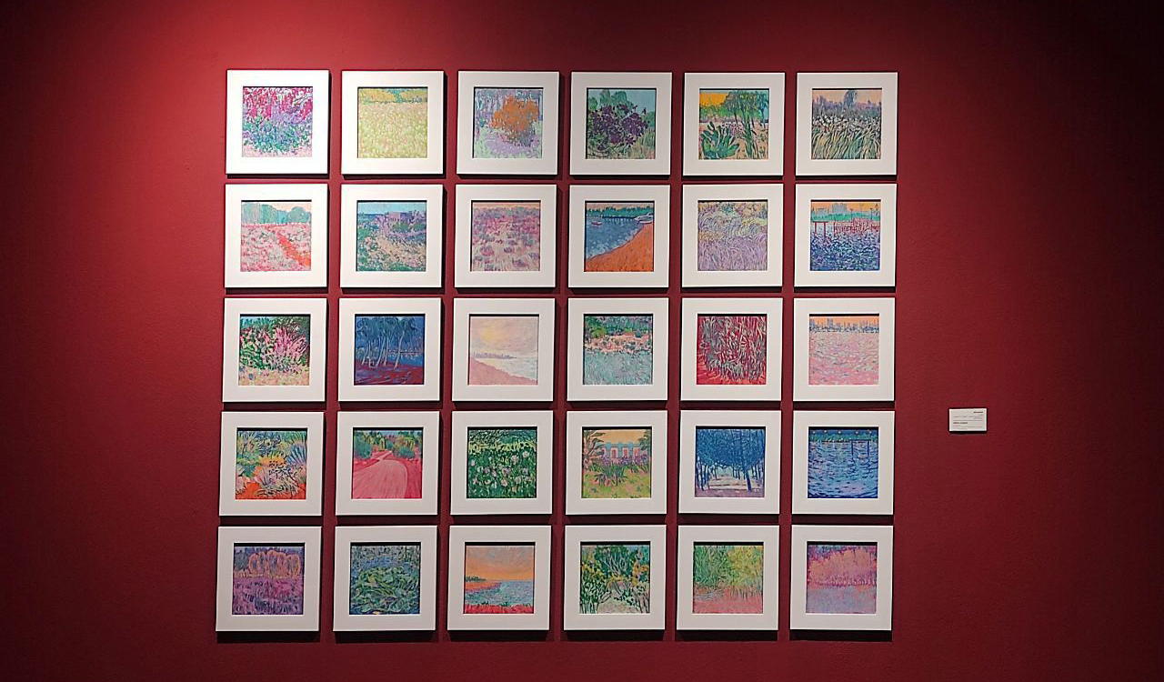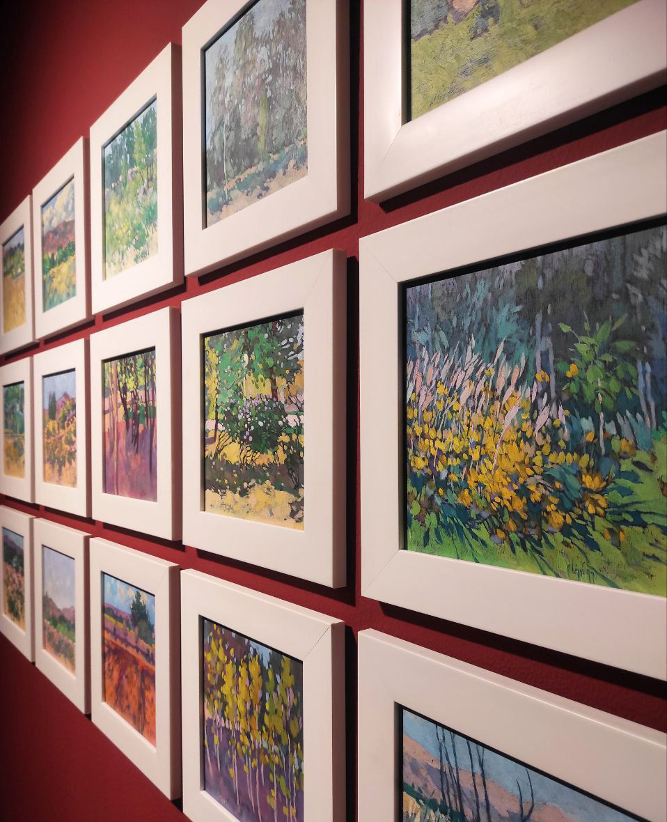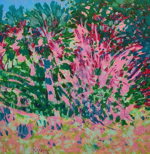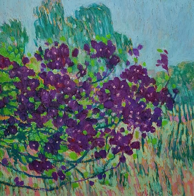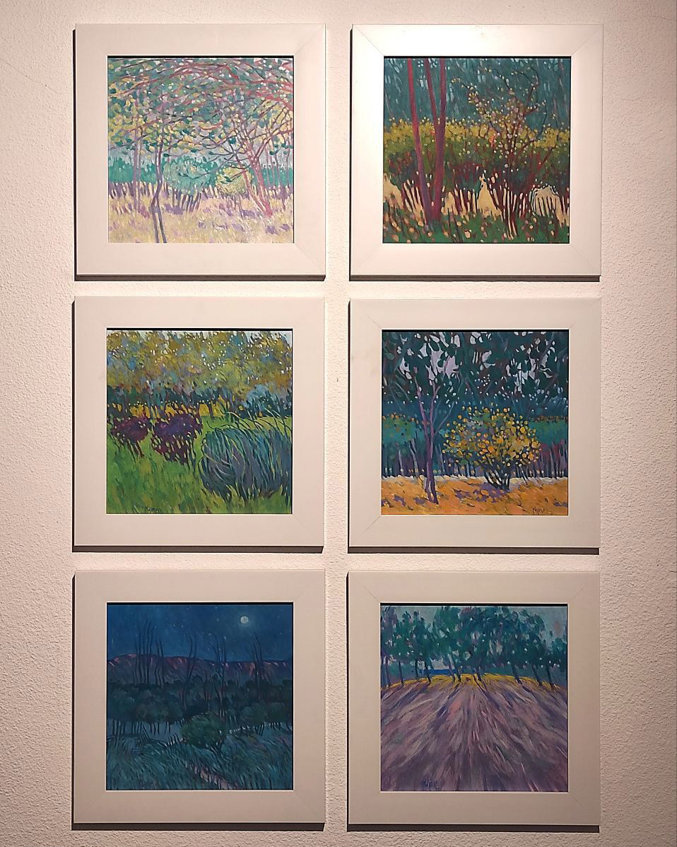 درخت ودرخت گون ها در اینجا دیگر کیفیت مادی خود را به ببینده القا نمی کنند بلکه نمودی از آنچه نقاش می بیند ارایه می کند و تعاریف از پیش تعیین شده را کنار میگذارد و در تقاطع نقاط نورانی ایجاد شده بین گل ها، گیاهان، آسمان و زمین چون پولک هایی رها شده به تعریف نگاه خویش از جهان می پردازد.
