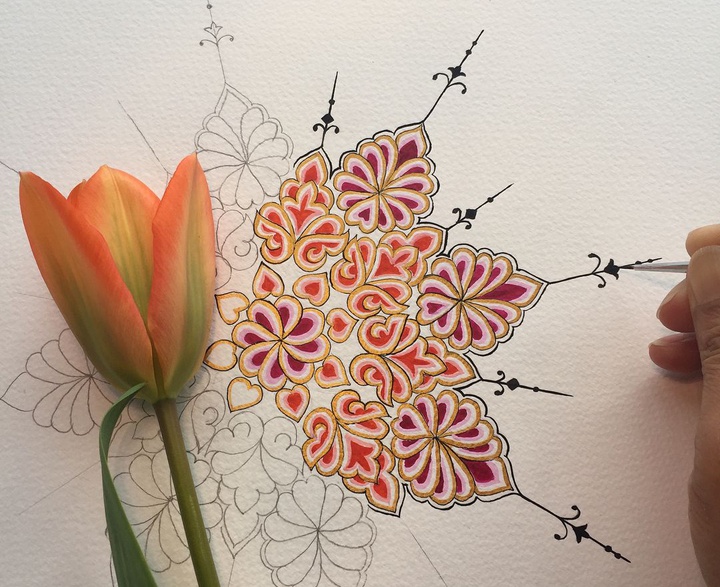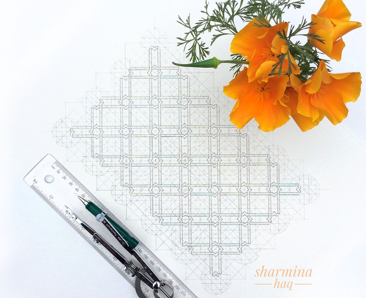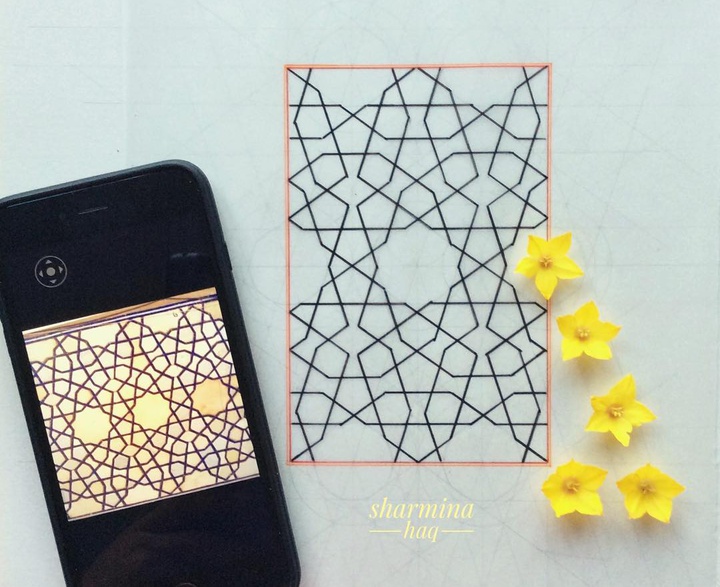 Sharmina Haq, an experienced visual artist specialising in Islamic decoration from Arabesque to Persian geometric design. She has a keen interest in analysing & deconstructing historic geometric and floral patterns and have lead workshops this area. Her art is inspired by extensive travel to the Middle East, Morocco and Turkey and to India and the Far East. With a mathematical background, She have a keen interest in analysing & deconstructing historic geometric and floral patterns. Alongside her art, She is a keen advocate for the revival of traditional Islamic arts and methods. She has undertaken international Islamic art study in Granada, Istanbul and Morocco and have studied at the Princes School of Traditional Arts in London.