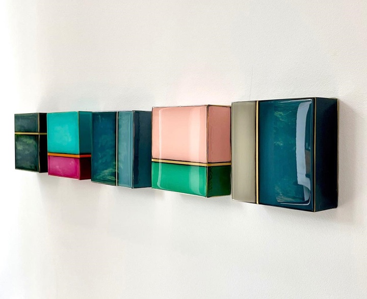 Regardless of the collection, all of my paintings are rooted in blending and layering. Both allow me to create work that is rich in color and depth. By pairing vibrant shades with muted tones, I make the unexpected - complex stories of simplicity. I have found that the richness in life, like art, comes from the many layers that we add as well as the multiple ways that our lives blend together. When starting the creative process, I like to sketch out ideas and play with color and design. I begin the process of painting on canvas or wood. With wood, I use resin after my paintings are finished. Working with resin requires a certain amount of respect, tenacity, and precision as there are constraints in achieving the desired effect. Multiple coats of resin are applied to each piece. In their final form, these works appear smooth and effortless due to their shine, depth, and texture. Influenced by Mark Rothko, Helene Herzbrun, as well as my grandmother, who was also a painter, I channel the euphoria I felt when exploring museums in my youth. Rothko’s color block pieces have always especially struck me as a way to tell a story without specifically depicting one. The power of my minimalist art comes from its ability to be open to interpretation. My pieces are both simple and deceivingly complex. Through my process of slowly blending darker colors with others that lighten them, they serve as a reminder that we cannot rush growth. Evolution comes about in an organic way, unencumbered by deadlines and force.