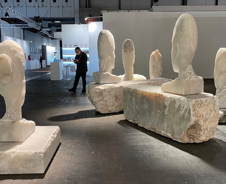 The sculptures of Barcelona-born Jaume Plensa populate the outdoor spaces of many cities around the globe: Chicago, Dubai, London, Tokyo, Toronto, and Bordeaux. These figures can be seen on public squares, near handsome works of architecture, or even – as in Nice – perched atop a row of poles that line the city's central boulevard. Plensa is also known for his giant heads, of which 'Sanna' is one. It is the elongated head and neck of a young woman, her eyes closed in meditation. The head is stretched to such a degree that it looks as though it could almost be a hologram. The alabaster-coloured fiberglass material makes 'Sanna' look, from afar, like marble. The sculpture is designed with the viewer on the ground in mind, so the perspective of the work seems to change as we approach it. 'Sanna' is part of a series of monumental female heads by Plensa that carry the names of different young girls and are situated in a variety of locations around the globe. "Tradition is feminine, everything that marks our life is feminine," explains the artist. "That's why I decided to make portraits of girls between eight and fourteen years old. It's a moment when beauty changes very quickly, which means that whenever I make a portrait, you could say that only a short while afterwards my model no longer exists." Each giant head is based on the photograph of a real person whom the artist has encountered. "The idea of combining photography, which has the capacity to capture the ephemeral, and sculpture, which dialogues with eternal things – that fusion of opposites becomes possible," he notes. Plensa studied art in Barcelona and had his first exhibition in his hometown in 1980. He has since had solo shows in many prominent international locations, including the Yorkshire Sculpture Park in the U.K., the Museo Reina Sofia in Madrid, and the Galerie Nationale du Jeu de Paume in Paris. He lives and works in Barcelona.