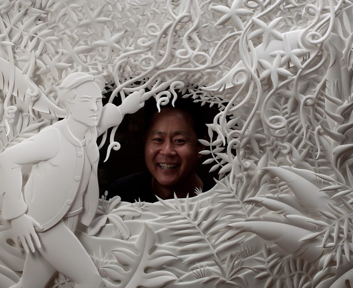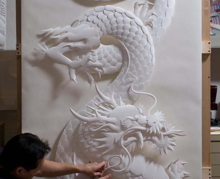 LA native, and world premiere paper sculptor Jeff Nishinaka is able to shape, bend, and pinch the delicate material to craft hyper-detailed murals. Nishinaka’s 40 years of paper sculpting has led him to thousands of projects including Bloomingdales, Cartier, Johnnie Walker Blue Label, Penn State University, Paramount Pictures, HBO, and Moncler to only name a few. Nishinaka is able to focus on and execute very small details in a larger image, something seemingly impossible to craft with paper.
