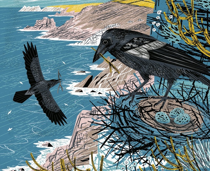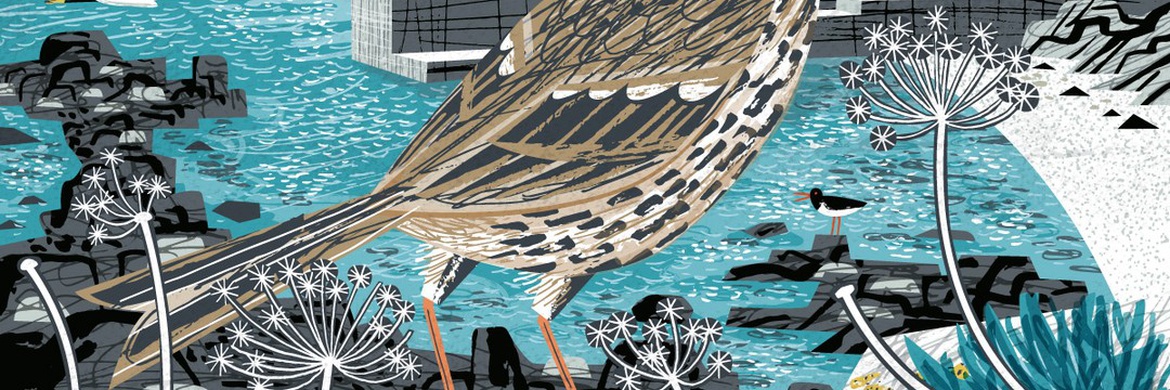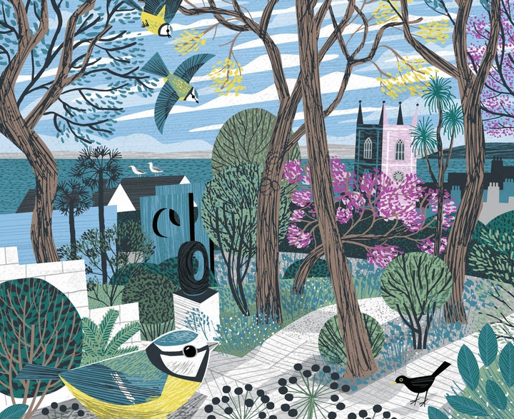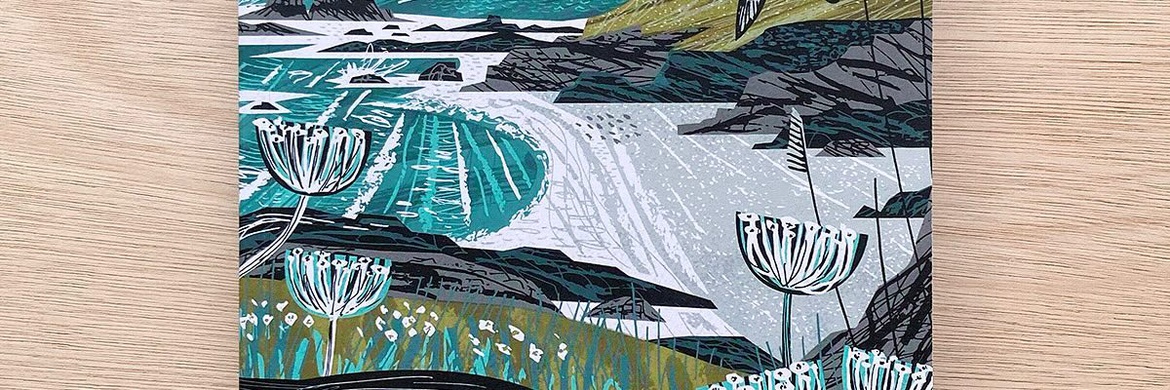 I am a freelance illustrator and artist. My work is inspired by the natural world and local Cornish landscape, which both feature heavily in my book covers and print designs. I start my illustrations by sketching outdoors on location, before creating the finished piece back at home using paint, collage and digitally with Adobe Illustrator. My style was strongly associated with the fashion brand Seasalt, where I was Senior Creative Designer for over 18 years, making hundreds of prints and illustrations for bags, scarves, tea towels, clothing, stationery and packaging.
