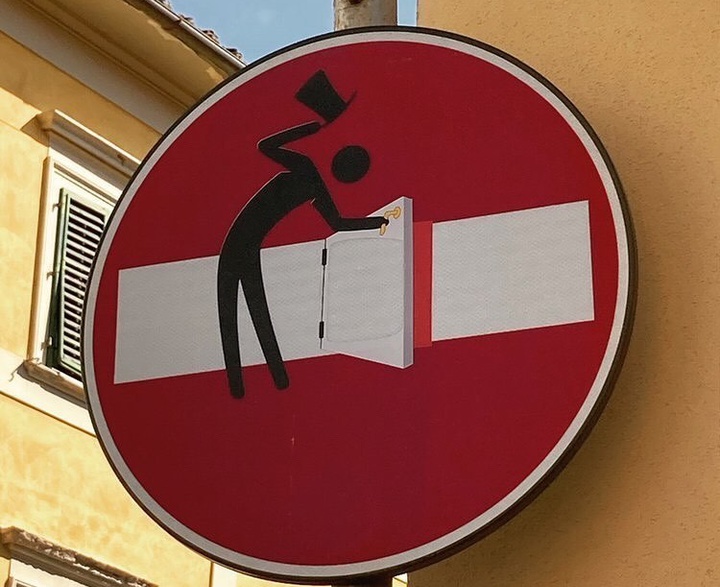 Colt Abraham is an Italian artist born in 1966. He teaches at the School of Fine Arts or Bazaar in Rennes, France, his studio is located in Florence, Italy. He changes the signs and symbols of traffic in a simple and unique way and gives them a sense of humor.