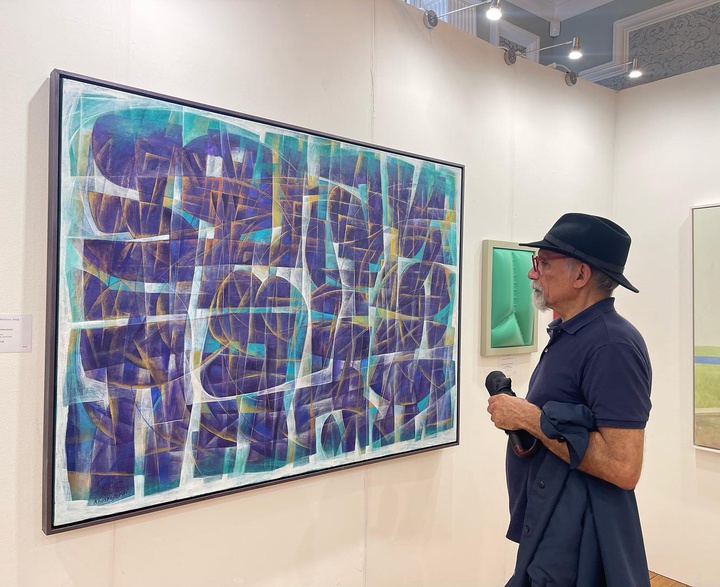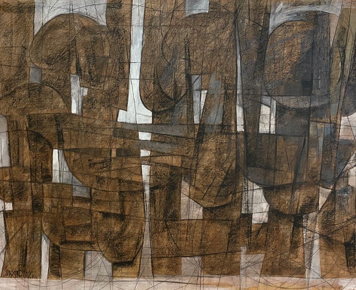 Hossein Khosrojerdi was born in 1957 in Tehran, Iran. He graduated with a diploma from the Tehran Boy’s Fine Arts School of Art in 1976. Followingly, Hossein was awarded BA in Fine Arts Faculty, from Tehran University in 1985. The revolution changed the art scene in Iran dramatically, followed by 8 years of war. Hossein artworks also reflected subjects of war, peace, and soldiers. In the next few years, the revolution brought another round of discrimination and oppression, Hossein’s work turned satiric and critical. Forgotten Principles is the title of a series that best depicted his disappointment and criticism of the political environment at that time (1982-1999). In 2000, Hossein’s artwork transformation prompted a unique series of digital media with mummies representing issues that humankind faces on a daily basis. In 2009 after his immigration to the UK Hossein continued his work starting with a series of grey buildings with the yearning for a place to call home. His most recent work is a collection of abstracts meticulously textured and composed (2010-present). Hossein is the winner of numerous awards and juror of major art competitions in Iran and abroad. His work has been exhibited in galleries and auction houses around the world. He currently lives and works in London.