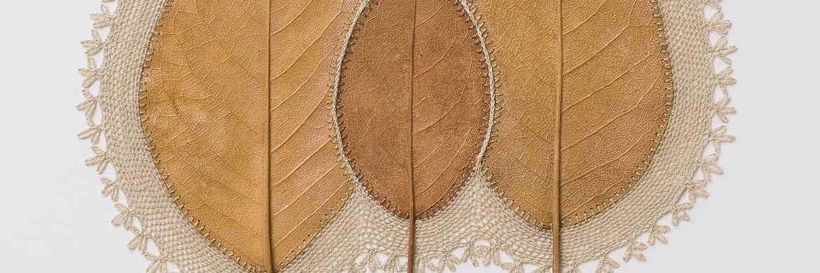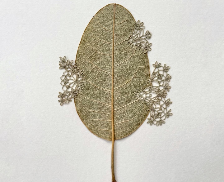 Susanna Bauer was born in Eichstätt, Germany in 1969 and was raised in the countryside, where she developed a passion for nature and the land. She studied Landscape Architecture at the Technische Universität in Munich and during that time she also worked at the Jardin des Plantes botanical gardens in Montpellier, France. She went on to become a modelmaker and spent two decades working in film and television. From 2007 to 2008 she studied at Camberwell College of Art and began to combine her love of nature with her finely tuned technical skills, laying the foundation for her future art practice. Susanna has exhibited in the UK, USA, Sweden, Italy, The Netherlands, Switzerland, Hong Kong, South Korea, Japan and India. “I work with natural leaves and crochet, creating an intimate dialog with nature. Found leaves are repaired, embellished and combined using handmade lace crochet – a laborious traditional technique relying on tension, set in direct relationship to the fragile natural material. The resulting forms are a meditation on the beauty and intricacy found in the natural world and a reflection of complex and tender relationships both within ourselves and our environment. There is a fine balance in my work between fragility and strength; literally, when it comes to pulling a fine thread through a brittle leaf or thin dry piece of wood, but also in a wider context - the tenderness and tension in human connections, the transient yet enduring beauty of nature that can be found in the smallest detail, vulnerability and resilience that could be transferred to nature as a whole or the stories of individual beings”.