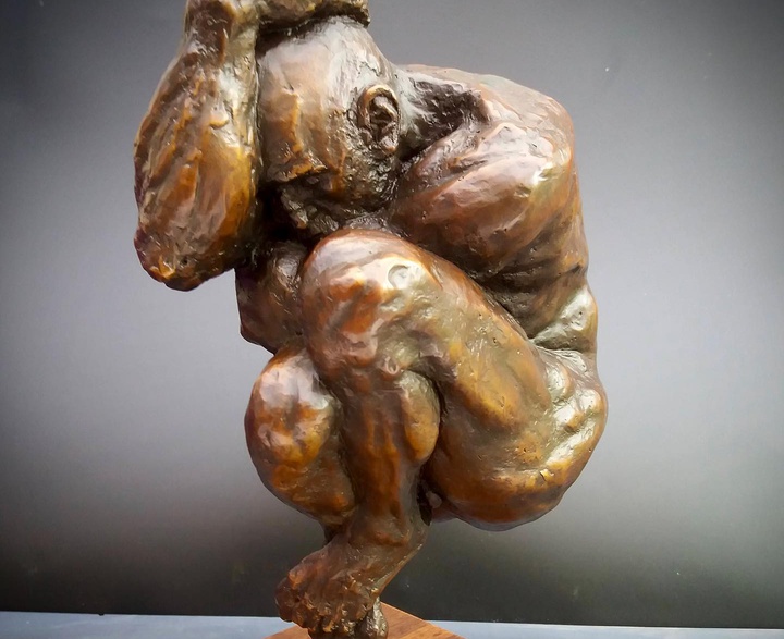 Marc Bodie was born in Newport, South Wales in 1966 and currently lives and works in Wiltshire, UK. Bodie's sculptures possess an emotional intensity, drawing narratives from poetry, social and political concerns and a close study of the Old Masters. The apparent physical strength of his masculine figures belie the fragility and vulnerability of his subjects, giving a contrast of darkness and light; and of suffering and hopefulness. The works are carved from stone or modelled using clay, then realised in bronze, bronze resin, reinforced concrete, concrete resin and, at times, incorporating rusted metal rods. Suggesting processes associated with natural growth and change, Bodie’s figures appear as if shaped by natural forces: bent by howling winds, carved by waves or twisted by geological movements. At other times the crouching, huddled forms suggest rocks, clouds and plants.