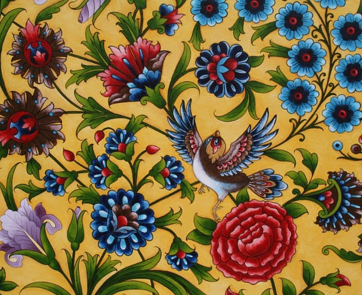 "Effat Takloo" was born in 1979 in Gonbad Kavous and lives in Kerman. She is a painter and architectural designer. She is a member of the Kerman Association of Visual Arts and has completed her undergraduate studies in carpet weaving at Shahid Bahonarbeh University. She has been teaching traditional design and pattern geometry at the Faculty of Art of Bahonar University of Kerman for ten years and also has a teaching background in other faculties. Taklo has written the book "Pictures of Kerman Historical Tiles". She has also collected documents about the history and architecture of Kerman under the title "Kerman Houses". She has won the top research rank for producing the documentary "Kerman Houses" in the 18th Iranian Television Production Festival in Tabriz and the Production Festival of Kerman Film Centers. And once she won the first place in the photo section in the festival of productions of film centers in Kerman province. So far, she has been the judge of the traditional arts section of the Kerman Youth Visual Arts Festival and has been the instructor of some workshops in the field of traditional designs in costume design. At the invitation of Saba Academy, she participated for two years as a lecturer in coffee house painting workshops at the Palestine Museum of Contemporary Art in Tehran. Takloo has worked as a designer and executor in several architectural projects inside and outside the country, including designing and executing the interior decorations of a traditional Safavid-style restaurant in Belarus, designing the entrance and architectural decorations inside and outside the spiritual school, designing designs as part of interior decorations. Kerman artist garden, etc. was present. The artist has participated in more than fourteen solo and group exhibitions in different cities.