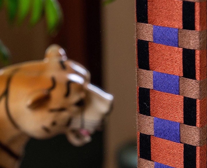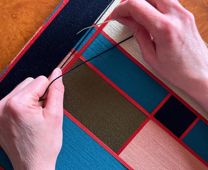 Samantha (b. 1974) is a London-born textile artist with a background and career in fashion knitwear. She studied Knitwear and Technology at the University of the Arts, London, graduating in 1996. After relocating from London to the South coast in 2017, she has set up her work place at her unique Art Deco home which she uses as a base for her textile practice, location work and creative workshops. Samantha developed her woven panels after an experiment in product design, creating and making a pair of hand woven mirror frames using an off loom woven technique.