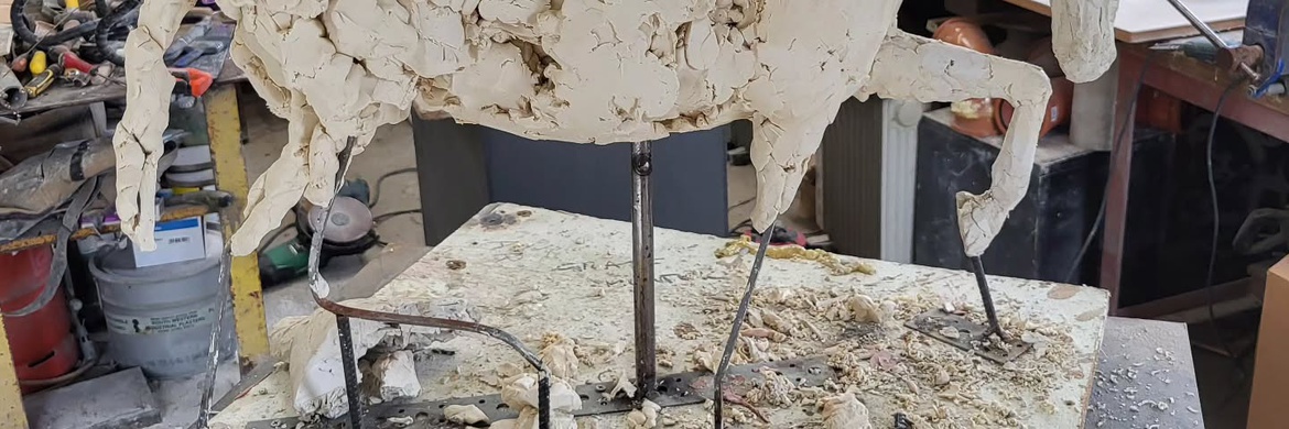 Born in Hampshire in 1971, Adam Roud returned to live and work there after graduating from John Mores University Liverpool studying fine art. Initially working at The Morris Singer foundry learning the process of lost wax and sand casting, where the Major figures of the last century have had their sculpture cast, Hepworth, Caro, Paulozzi, Frink, Nemon and Henry Moore! Since 2000 with a studio and workshop on Lord Portsmouth’s estate Adam has developed his work with large and small commissions, figure studies, portraits and the main body of abstract pieces.