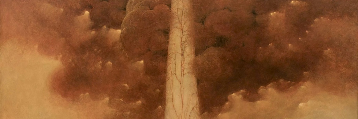 Zdzisław Beksiński was born in Sanok, southern Poland. He studied architecture in Kraków. In 1955, he completed his studies and returned to Sanok, working as a construction site supervisor, but found out he did not enjoy it. During this period, he had an interest in montage photography, sculpting and painting. When he first started his sculpting, he would often use his construction site materials for his medium. His early photography would be a precursor to his later paintings often depicting peculiar wrinkles, desolate landscapes and still-life faces on rough surfaces. His paintings often depict anxiety, such as torn doll faces, faces erased or obscured by bandages wrapped around the portrait. His main focus was on abstract painting, although it seems his works in the 1960s were inspired by Surrealism. Beksiński had no formal training as an artist. He was a graduate of the Faculty of Architecture at the Kraków Polytechnic with MSc received in 1952. His paintings were mainly created using oil paint on hardboard panels which he personally prepared, although he also experimented with acrylic paints.