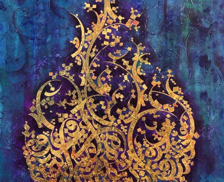 Aref Amrollahzadeh was born in 1992 in Kerman. He studied miniature until his bachelor's degree and works in the field of calligraphy and graphics. From 2001, he started his artistic activity in earnest. He is the chairman of the Kerman Governor's Young Advisors Council and is the founder of the Kerman Calligraphy House. So far, he has won first place in 9 national competitions and festivals, and in the International Festival of Youth Visual Arts in 2012 and 2017, and his works have been published in student magazines and books of the Festival of Youth Visual Arts. "Amrollahzadeh" has a history of participating in more than fifty solo and group exhibitions in Iran, Spain, Portugal, Qatar and Oman and has held training workshops in Tehran, Shiraz, Bandar Abbas, Kerman and Spain and Portugal. He started learning calligraphy in Nasta'liq in 2003 and was trained professionally by a philosophical professor in 2007. Continuing his calligraphy activities, due to his interest in painting and the world of colors, he chose the field of calligraphic painting and has been following this field seriously ever since. He knows success in how he conveys his feelings to the audience, when the audience can have a good emotional interaction with his works, he has succeeded. Creates his works improvised and focuses on form and colors. Each person can have different perceptions of these works according to their own mentality. According to him, he does not use digital techniques, only occasionally uses graphic software for initial designs and etudes. Before going to primary school without being able to read, he was interested in writing and started writing at the age of nine. He likes to be completely free when creating a work of art and to devote all his energy to work. He is more interested in visual reading and sometimes reads art history books. Previously, the atmosphere of his works was more traditional and now he is studying and combining modern spaces with traditional Iranian paintings. He pays attention to the artistic aspect of his work and does not consider it to be merely decorative. He believes that while doing the work, when the artist's mind is free from any worries, the best possible thing will happen in the work of art.