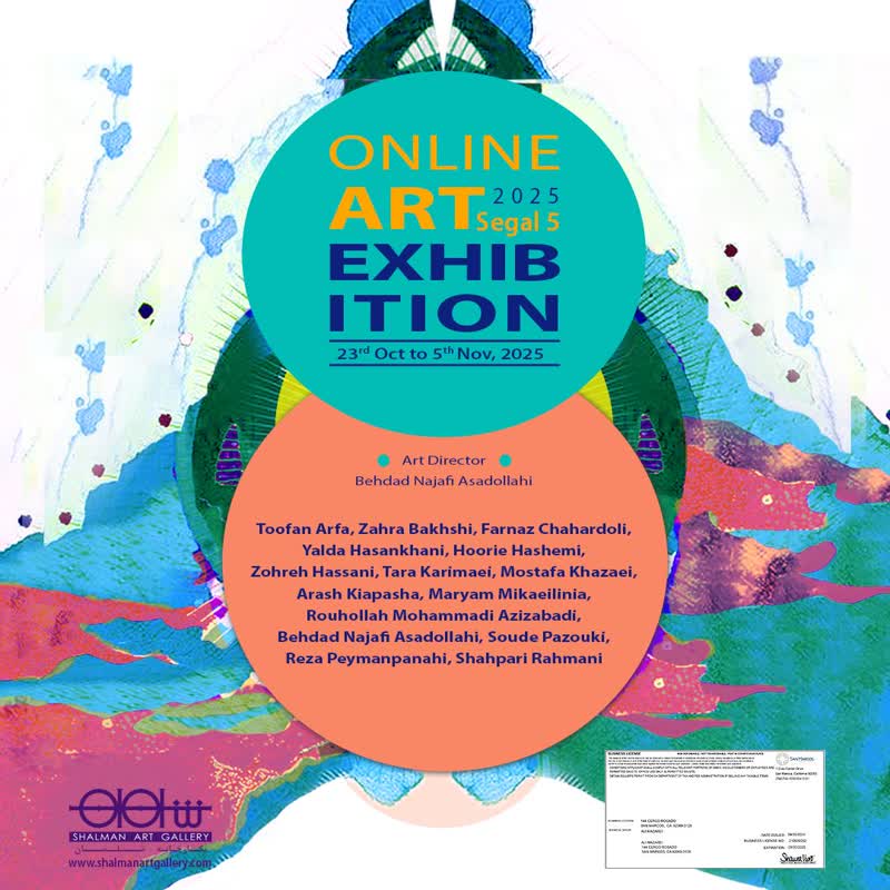 The visual art exhibition “Segal 5” showcasing the artworks of 15 distinguished Iranian artists, was officially inaugurated and is now available on the Shalman online art gallery on October 23, 2025. The exhibition will continue for 14 days until November 5, 2025.