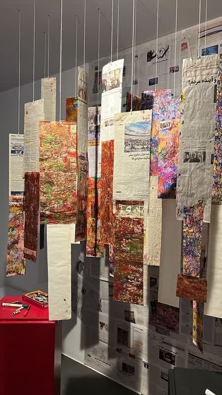 The Palimento exhibition, featuring more than 40 artworks by Behdad Najafi Asadollahi curated by Rosa Matinfar (Matin Art Platform), opened on Friday, December 19, 2025, from 4 PM to 8 PM at the Nian Art Gallery. “Palimento” emerges from two interrelated concepts: palimpsest, a multilayered narrative in which the past never fully falls silent and continuously resurfaces through new strata; and pentimento, the painterly term describing the moment when an older layer an earlier decision reappears as aged pigments recede. Both notions insist on a simple yet profound truth: no artwork ever begins entirely anew. Everything we create stands upon traces of what has already been written. As a multimedia archive, “Palimento” explores this very return and continuity. Developed over four years, the project treats the newspaper not as a vessel for news but as a historical medium. Here, its pages become a site where layers of time, politics, erasure, and emotional response are inscribed. Texts that once claimed to convey unfiltered truth are now obscured beneath paint, yet their remnants; the mastheads, logos, and page structures persist like murmurs rising from the depths of each piece. The theoretical foundation of the project draws on the notion of the palimpsest, the scraped parchment that Gérard Genette expanded upon in his theory of intertextuality. In every work, the underlying layer is the official, mediated narrative; the upper layer—an abstract painting—becomes an emotional or interpretive response to that narrative. This proximity of surfaces generates an aesthetic uncertainty: can a single truth ever stand before us when something from the past continually emerges beneath the fresh layer of paint? This sensibility materializes at the heart of the exhibition in the interactive installation “The Wall of Rewriting.” The viewer is pulled out of passive spectatorship and transformed into an active agent who reconstructs narrative through touch, marks, signs, and writing. On a wall covered with newspaper, each visitor records what they see and feel, an act echoing pentimento itself: a new layer settling atop an old one without fully concealing it. Ultimately, “Palimento” poses a quiet yet unresolved question: amid the noise and turbulence of contemporary media, where does meaning truly arise? By covering text, the artworks create a form of deliberate silence, one dense with unheard voices, while the participatory installation turns that very silence into a “personal voice.” The exhibition becomes an invitation to see time, memory, and media as layered phenomena, where every color, every line, and every word is a trace of what has been and what is still being written. The path suggested here often leads to one conclusion: the viewer, too, becomes a contributor to the next layer. The exhibition will be open for 10 days until December 29, 2025, excluding Saturdays, from 2 PM to 7 PM at the Nian Art Gallery for enthusiasts.